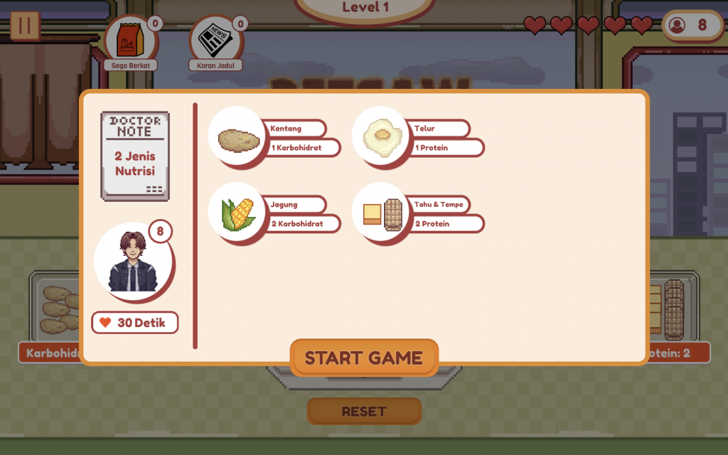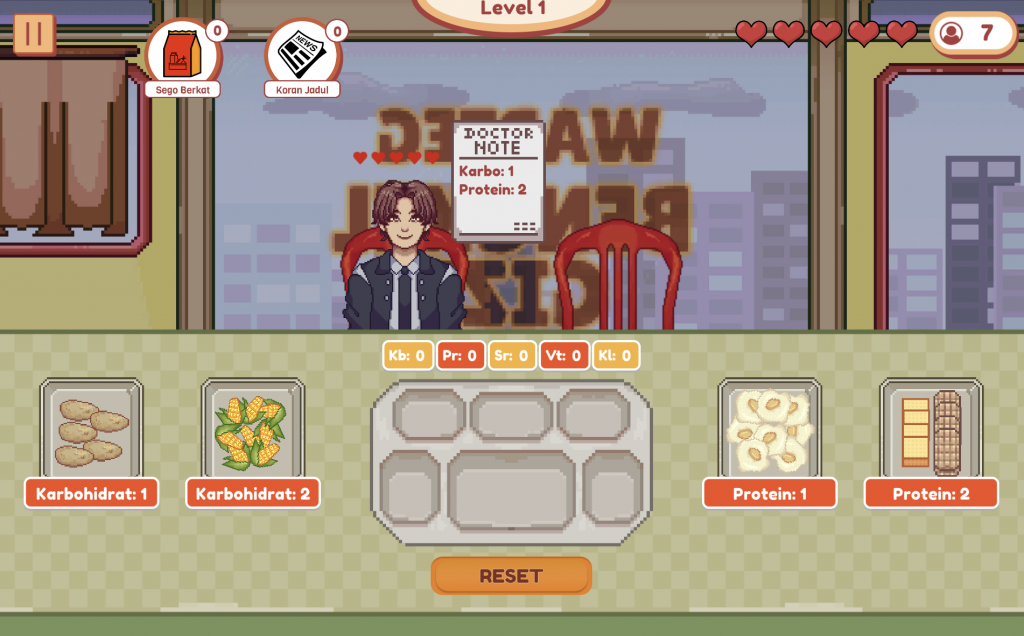 Bengkel Gizi is 2022 puzzle game developed by Nimbus Tim. It tells the story of a young person with the ambition to develop a nutritious food business. They start this journey by opening a Warteg called ”Bengkel Gizi”. Players are challenged to provide food according to the nutrition required by their customers, which includes five types of nutrition that customers can request with a variety of food options for each nutrition type that customers can order. As a result, users will receive stars at each level to unlock higher levels.