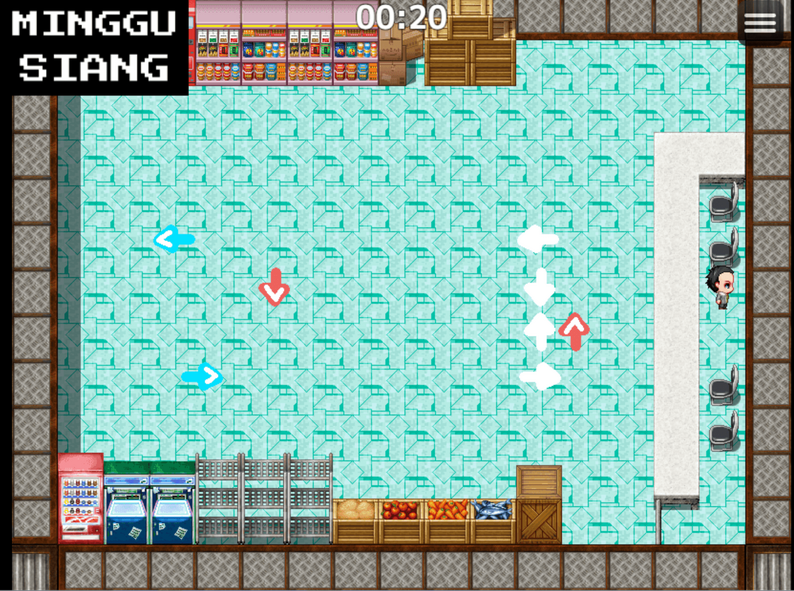 Cashier Job (DDR-style Mini-game): Use Up (↑), Down (↓), Left (←), and Right (→) to match the directions shown on the screen.